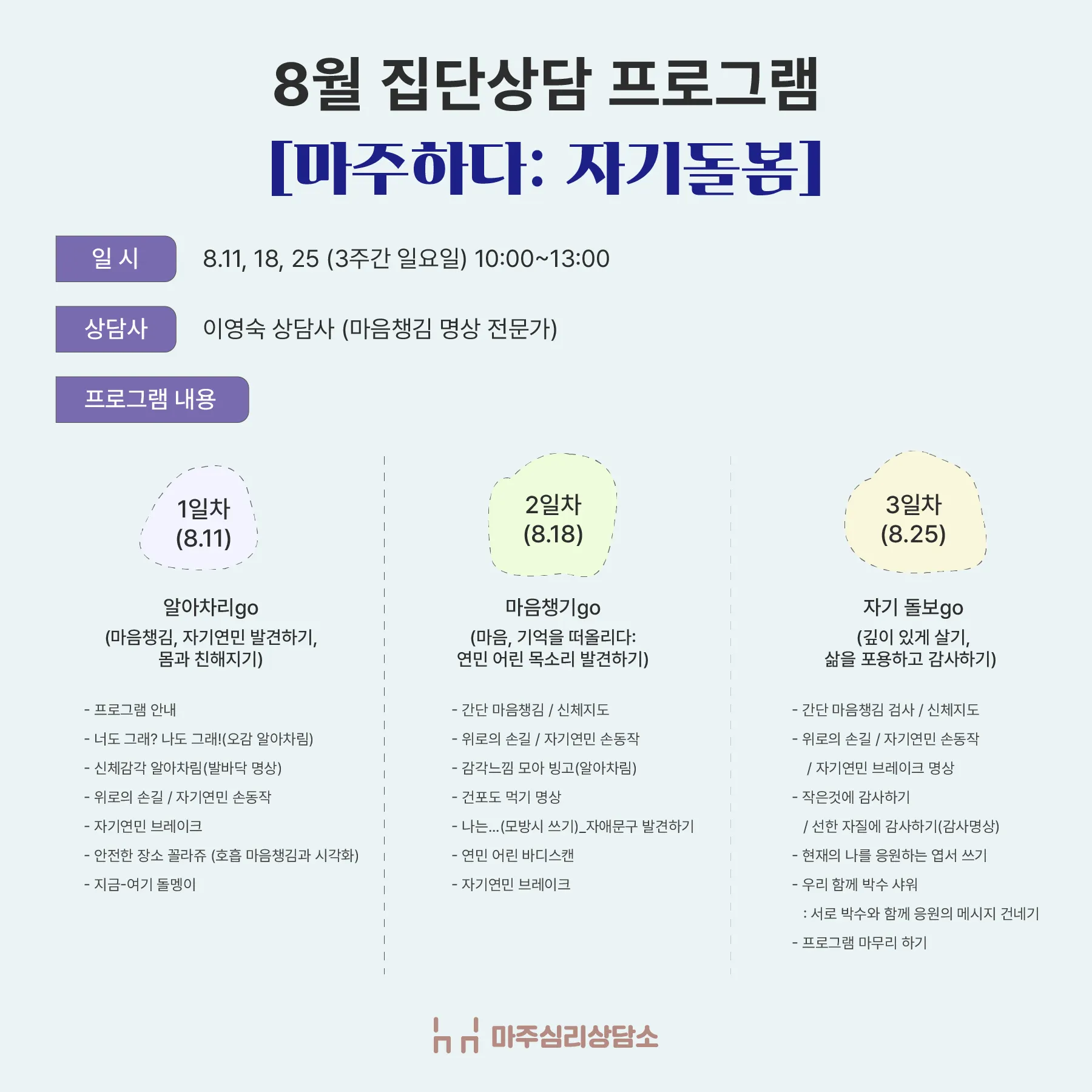 8월의 집단상담 프로그램 [마주하다: 자기돌봄]