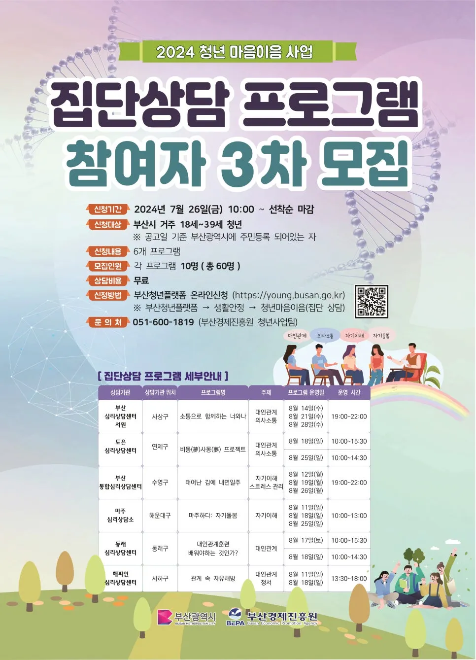 신청대상: 마음건강 상담이 필요한 부산광역시 거주 만 18세 ~ 39세 청년 누구나