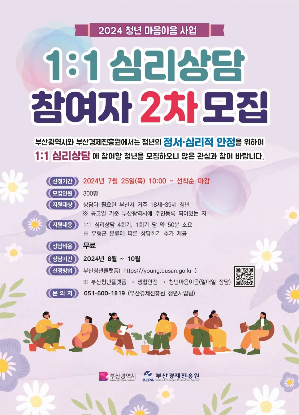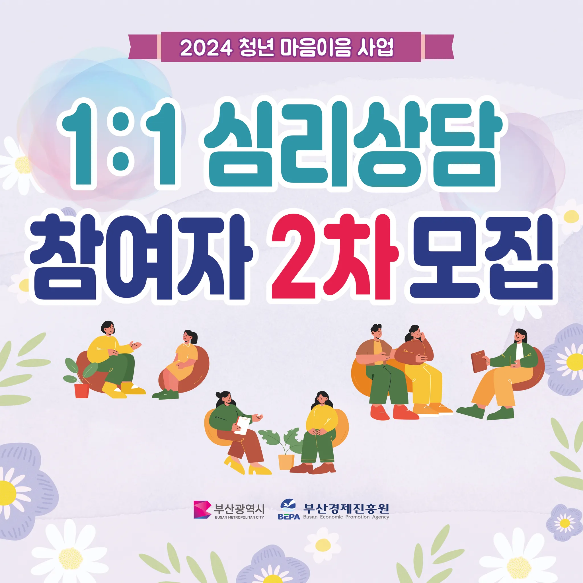 2024년 청년 마음이음 사업 일대일 상담 2차 참여자 모집 공고가 게시되었습니다.