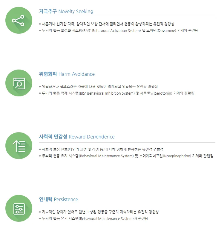 TCI 검사에서는 아래와 같이 구분하여 기질을 파악합니다.